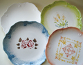 白い素焼きの陶器 [ビスク] に陶器専用絵具 [グレーズ] で水彩画のように絵を描いて、約1000度で焼いて仕上げれば、本格的な絵皿や、毎日使う素敵なオリジナル食器が作れます。