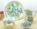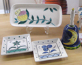 ビスクの種類も、グレーズの色数も豊富です。 イタリア風、オランダのデルフト焼き、スペイン風タイル、もちろん有田焼のような和風etc.お好きな陶器が作れます。